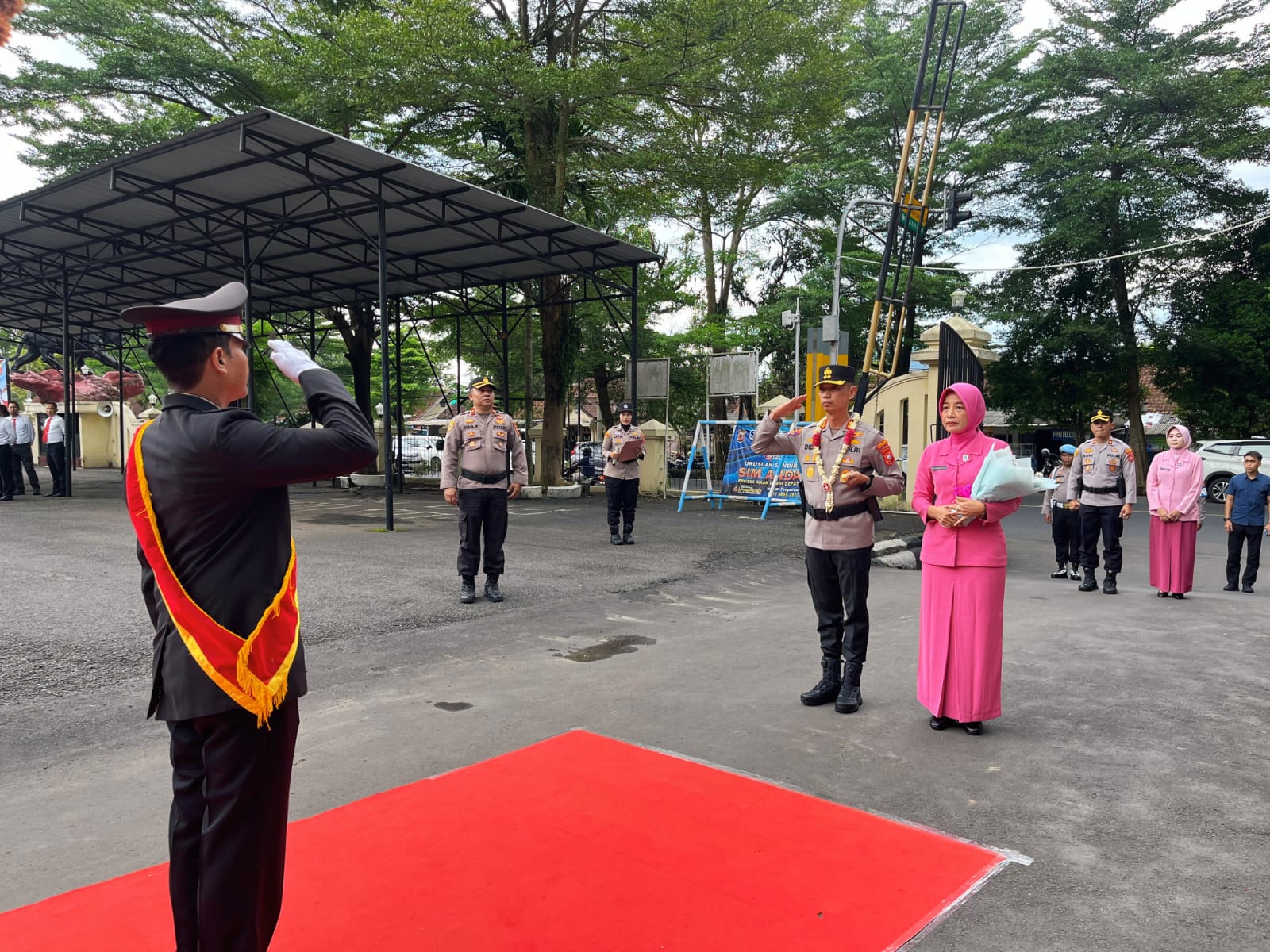 Rangkaian kegiatan ditutup dengan prosesi pelepasan Kapolres lama melalui tradisi pedang pora dan jajar kehormatan. Seluruh kegiatan berlangsung aman, tertib, dan kondusif.