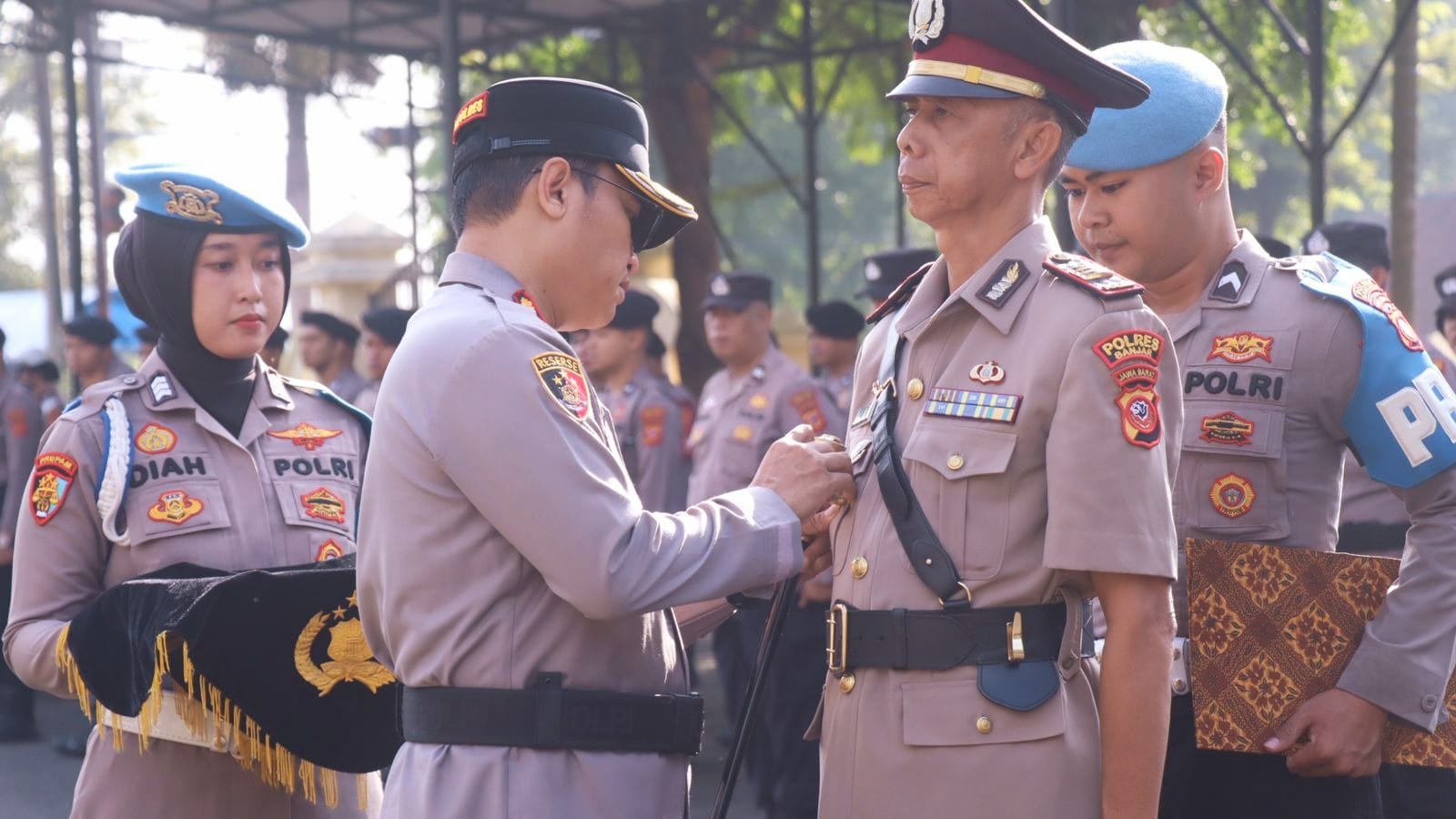 Upacara pengukuhan diikuti oleh pejabat utama Polres Banjar, para perwira, serta seluruh personel Polres Banjar. Seluruh rangkaian kegiatan berjalan tertib dan lancar, mencerminkan soliditas dan profesionalisme jajaran Polres Banjar.