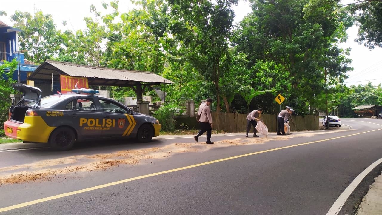 detak.co.id KOTA BANJAR-Respons cepat ditunjukkan jajaran Polsek Pataruman Polres Banjar dalam mengantisipasi potensi kecelakaan lalu lintas akibat tumpahan minyak solar di jalan raya Batulawang–Pangandaran, tepatnya di Desa Sukamukti, Kecamatan Pataruman, Kota Banjar, Sabtu (27/12/2025).
