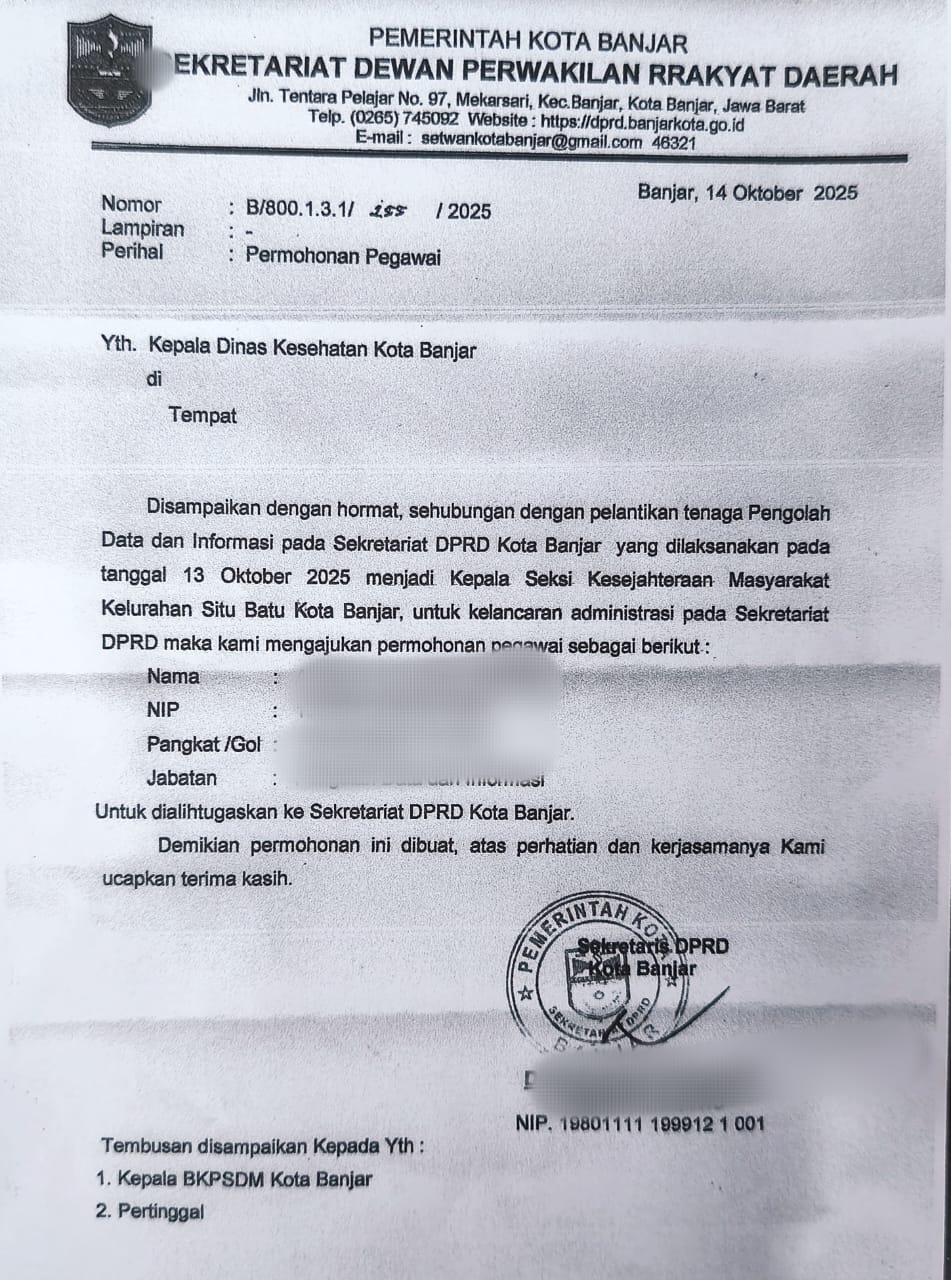 Beredar Surat Dinas, Rotasi dan Mutasi pejabat Kota Banjar dipertanyakan