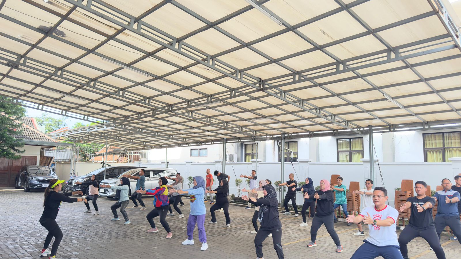 Senam pagi dilaksanakan dalam upaya meningkatkan kualitas kesehatan dan kebugaran seluruh karyawan BRI.