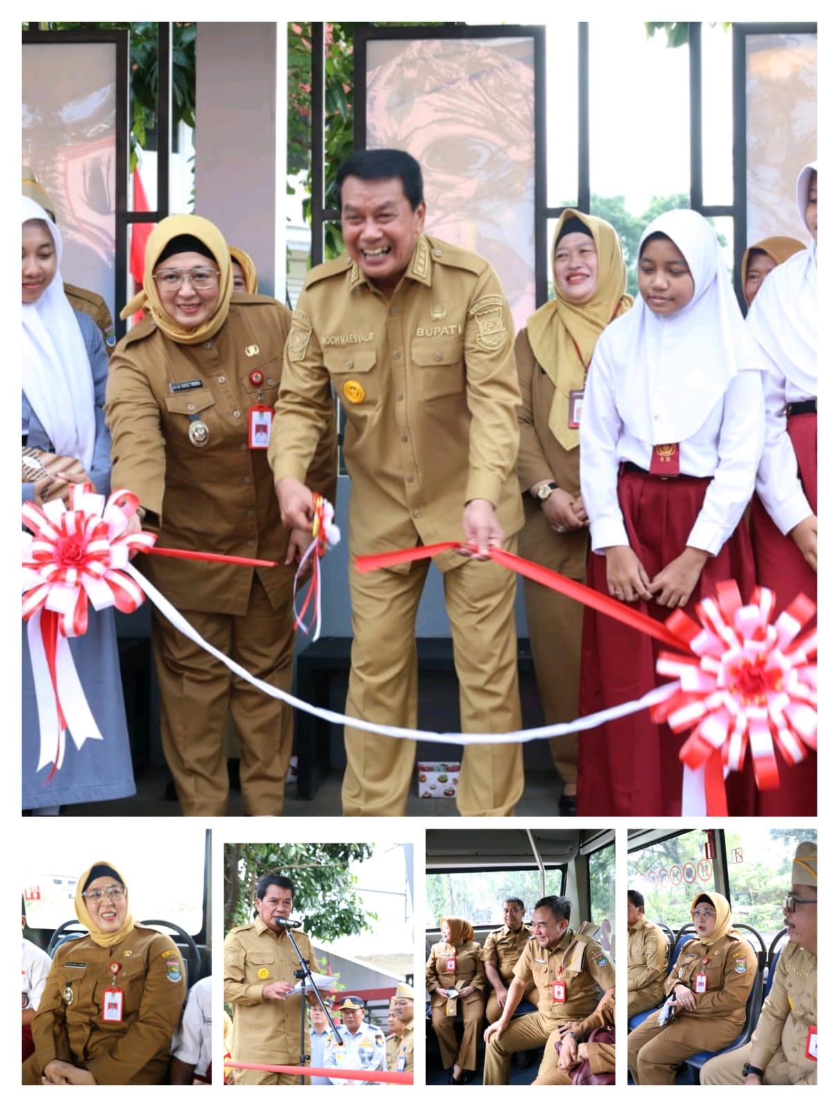 Bupati Tangerang bersama Wakil Bupati, Sekretaris Daerah, serta jajaran Organisasi Perangkat Daerah (OPD) turut meninjau langsung operasional bus sekolah gratis dan menyaksikan para pelajar menggunakan fasilitas tersebut.