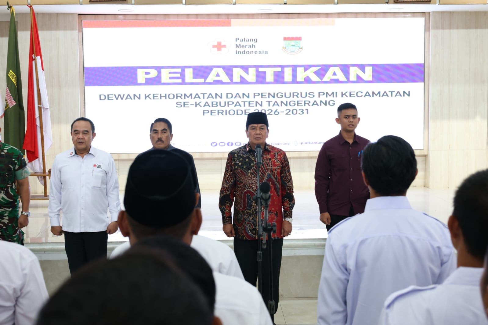 “Persis tanggal 12 Februari 2026 ini adalah hari ulang tahun PMI Kabupaten Tangerang yang ke-68. Sekaligus agenda ini dirangkaikan dengan pelantikan sebanyak 464 pengurus PMI kecamatan se-Kabupaten Tangerang dan Dewan Kehormatan. Kami bangga karena dihadiri langsung oleh perwakilan PMI Pusat,” ujar Bupati Maesyal Rasyid