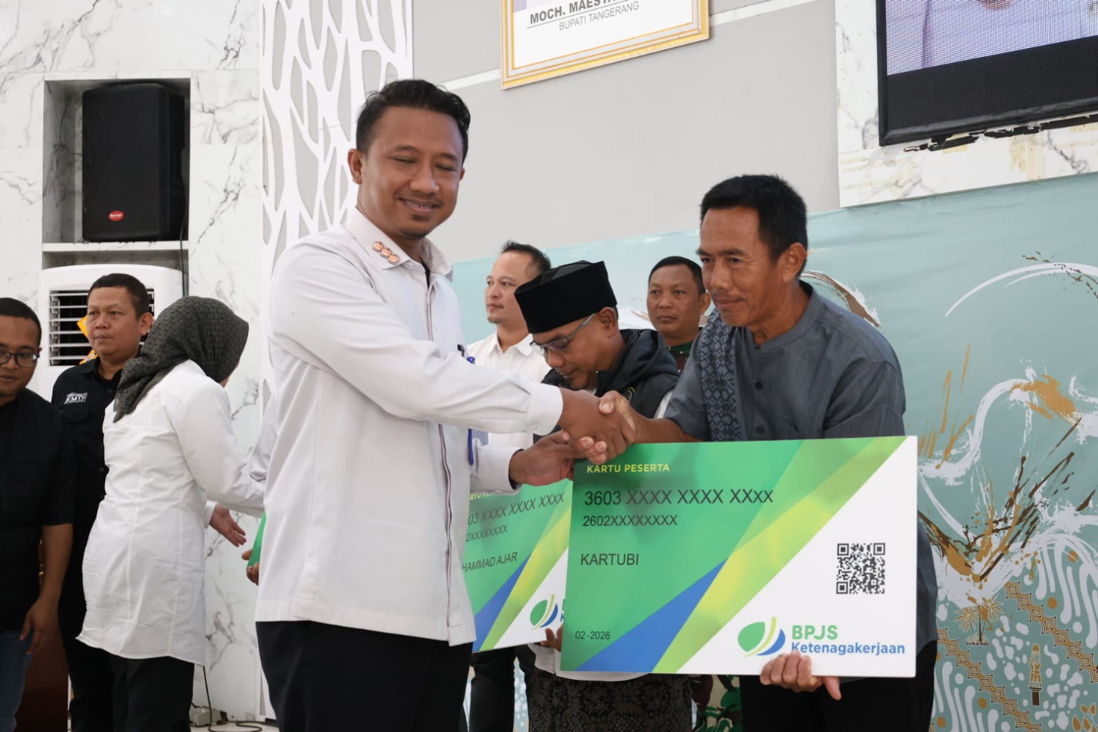 detak.co.id TANGERANG,—Bupati Tangerang Moch. Maesyal Rasyid memberikan bantuan perlindungan BPJS Ketenagakerjaan bagi 500 guru ngaji yang tersebar di lima (5) kecamatan wilayah Utara Kabupaten Tangerang, yaitu: Kec. Mauk, Kosambi, Pakuhaji, Teluk Naga dan Kec. Sukadiri. Penyerahan bantuan tersebut dipusatkan di Aula Kecamatan Mauk, Jumat (13/2/26).