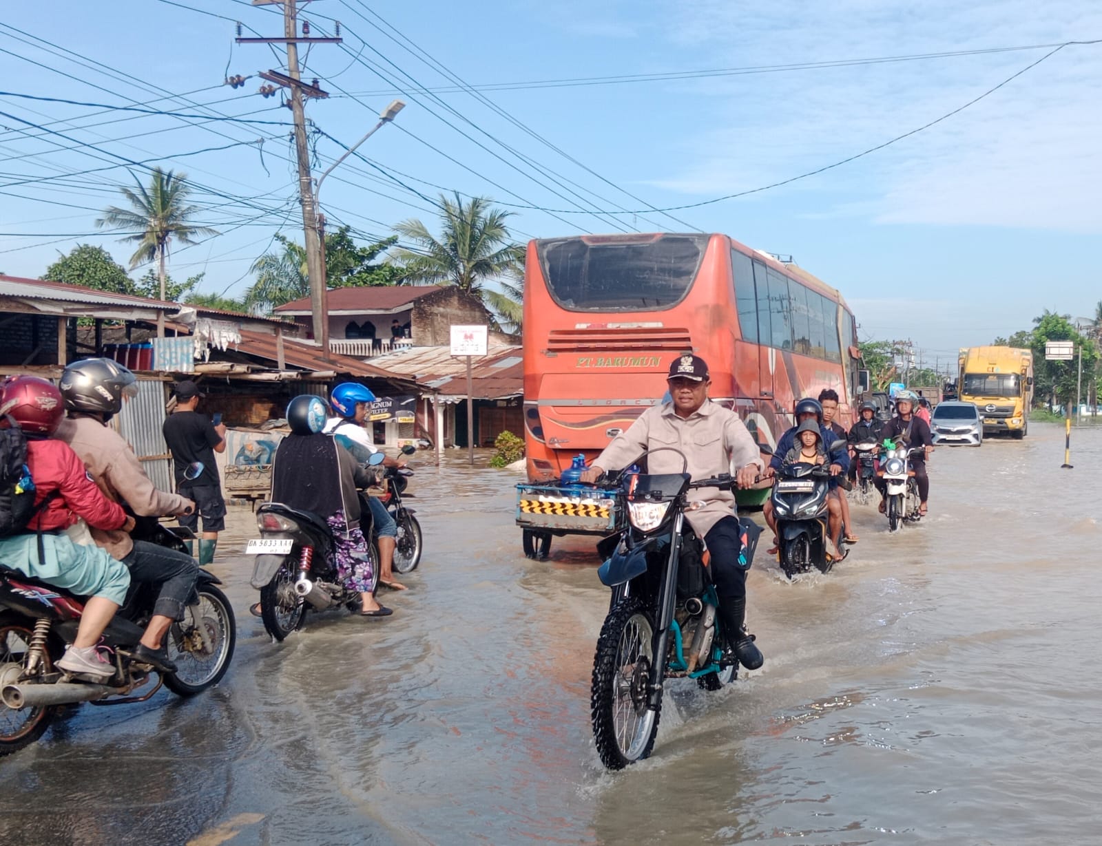 Darma Wijaya menyusuri sejumlah titik banjir di Kecamatan Sei Rampah, Sei Bamban, hingga Kecamatan Tanjung Beringin yang menjadi kawasan paling terdampak. Dengan mobilitas motor trail, ia dapat menjangkau lokasi yang sulit diakses kendaraan biasa.