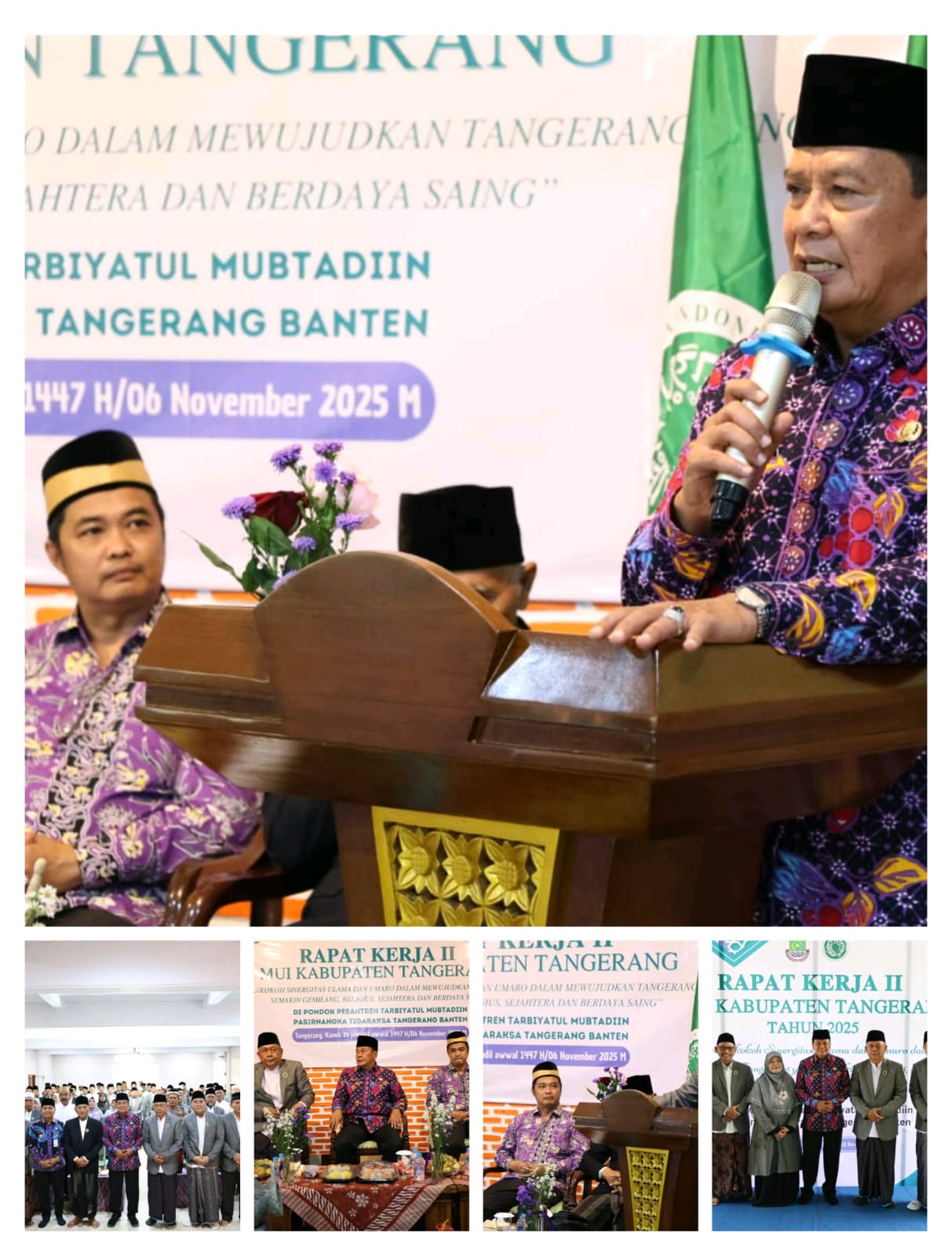 Rapat Kerja II MUI Kabupaten Tangerang ini diisi dengan pembahasan program kerja, penguatan organisasi MUI di tingkat kecamatan, serta strategi peran ulama dalam mendukung pembangunan daerah yang berlandaskan nilai-nilai religius dan kebangsaan.