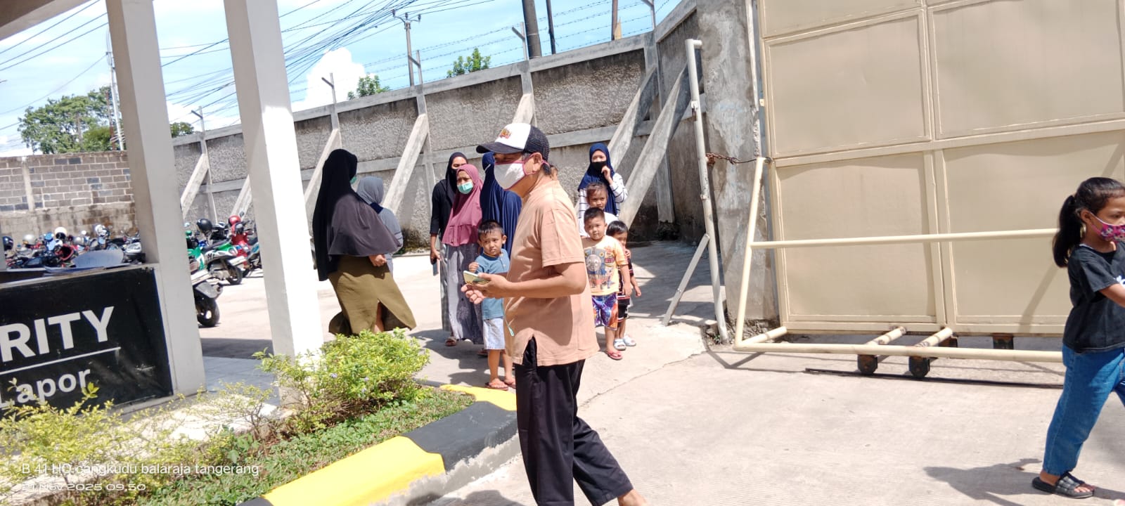 Dari video yang kami terima, nampak ibu-ibu dan anak-anak berkerumun di sekitar pos sekuriti PT. BOSS. Sebagian dari mereka menutup hidung dengan masker atau dengan kerudung.