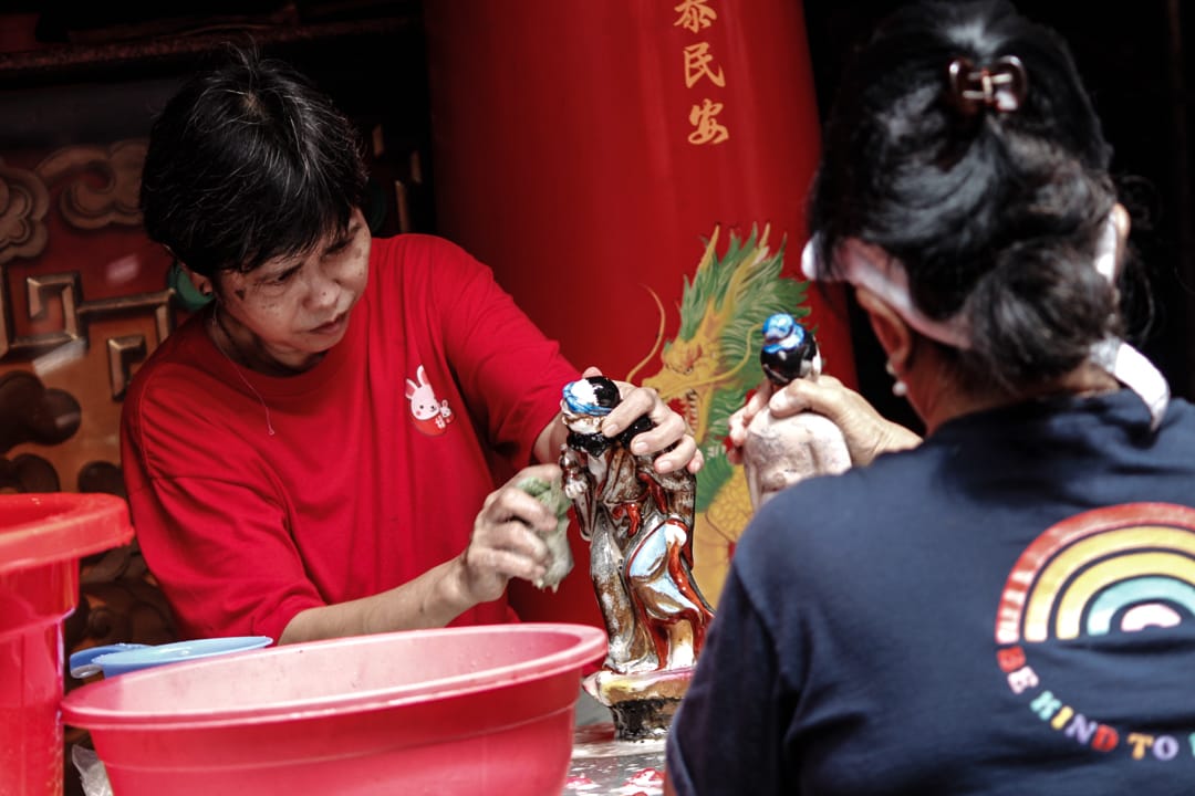 detak.co.id JAKARTA – Warga Tionghoa membersihkan patung di Vihara Dharma Jaya Toasebio, Petak Sembilan, Jakarta, Sabtu (25/1/2025). Ritual pencucian patung dewa dan bersih-bersih vihara dilakukan sebagai simbol kembali suci dalam segala aspek kehidupan untuk menyambut Tahun Baru China atau Imlek 2576 Kongzili pada tanggal 29 Januari 2025. (Foto: Detak/Aip Kurniawan)