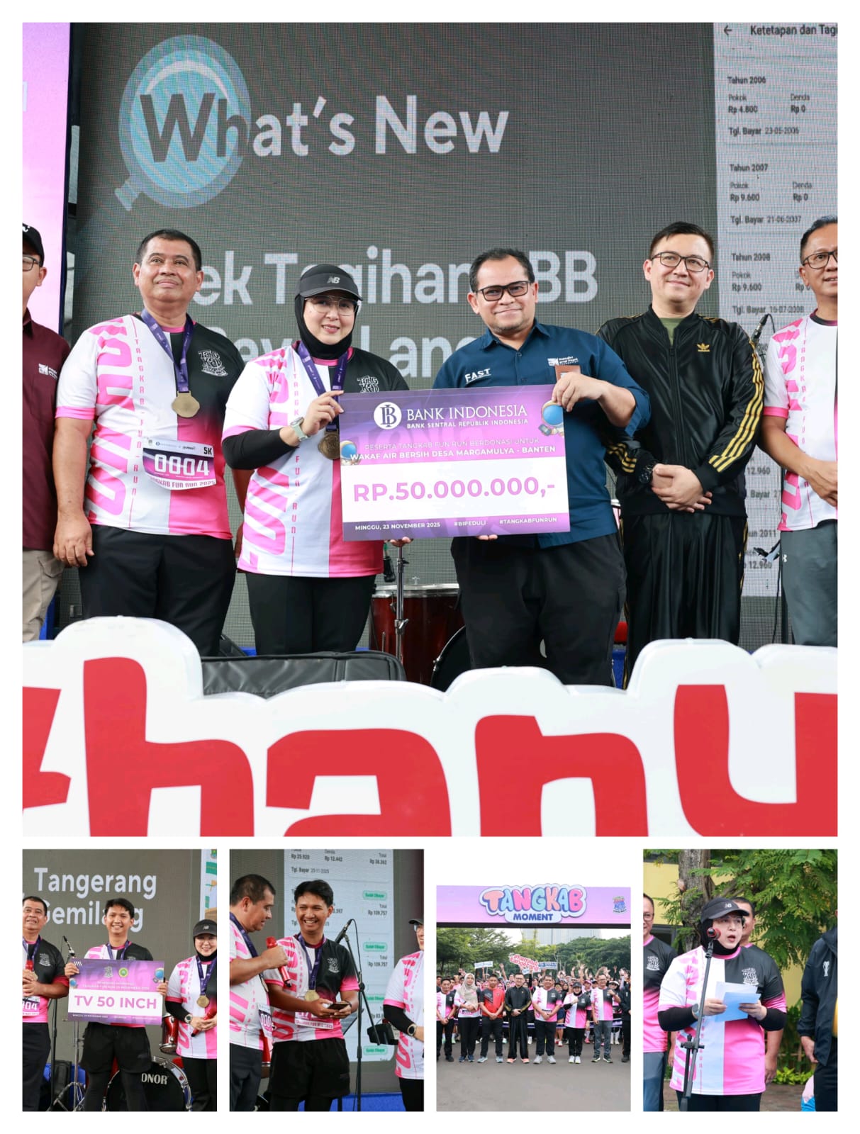 “Tangerangkab Fun Run ini menempuh jarak sekitar 5 kilometer, seru, dapat door prize, donasi dari registrasi peserta untuk pengadaan air bersih ke Provinsi Banten, ada juga pelayanan adminduk, dan sosialisasi pembayaran digital Qris,” imbuhnya
