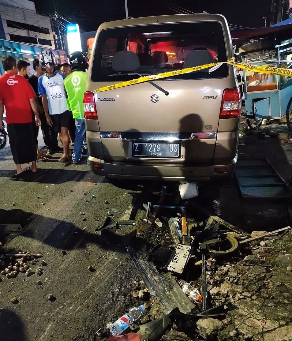 Menurut keterangan saksi, mobil jenis apv berplat nomor Z 1279 US itu melaju dari arah Barat menuju Timur. Namun Setibanya di depan kedai mixui, kendaraan tiba-tiba mengarah ke lajur kanan seperti hilang kendali.