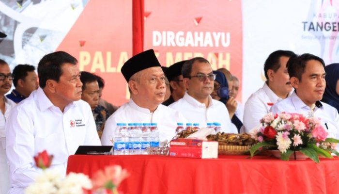 detak.co.id TANGERANG – Dalam rangka memperingati Hari Ulang Tahun (HUT) Palang Merah Indonesia (PMI) ke-80, Perusahaan Umum Daerah Air Minum Tirta Kerta Raharja (PERUMDAM TKR) Kabupaten Tangerang berpartisipasi dalam memberikan bantuan sosial berupa paket sembako kepada masyarakat. Bantuan sembako tersebut berjumlah 300 paket yang mana di dalamnya berisi beras, minyak dan kebutuhan lainnya.