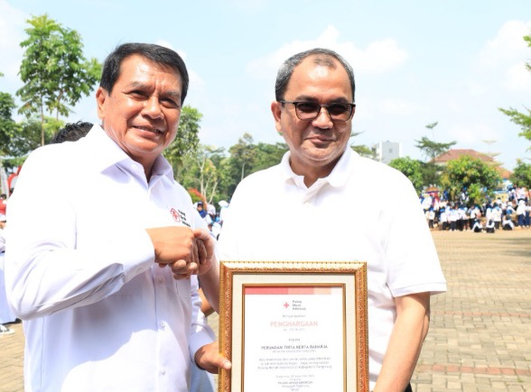 Pada kesempatan tersebut, PMI Kabupaten Tangerang juga memberikan penghargaan secara simbolis diserahkan oleh Bupati Tangerang yang diterima langsung oleh Direktur Utama PERUMDAM TKR, Sofyan Sapar. PERUMDAM TKR mendapat penghargaan atas kontribusi dan peran serta yang diberikan untuk mendukung tugas-tugas kemanusiaan Palang Merah Indonesia di Kabupaten Tangerang.