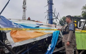 “Pas saya keluar rumah, ternyata ada tiang reklame roboh menghantam rumah. Beruntung tempat tinggal saya ngak kena,” kata Aris di lokasi.