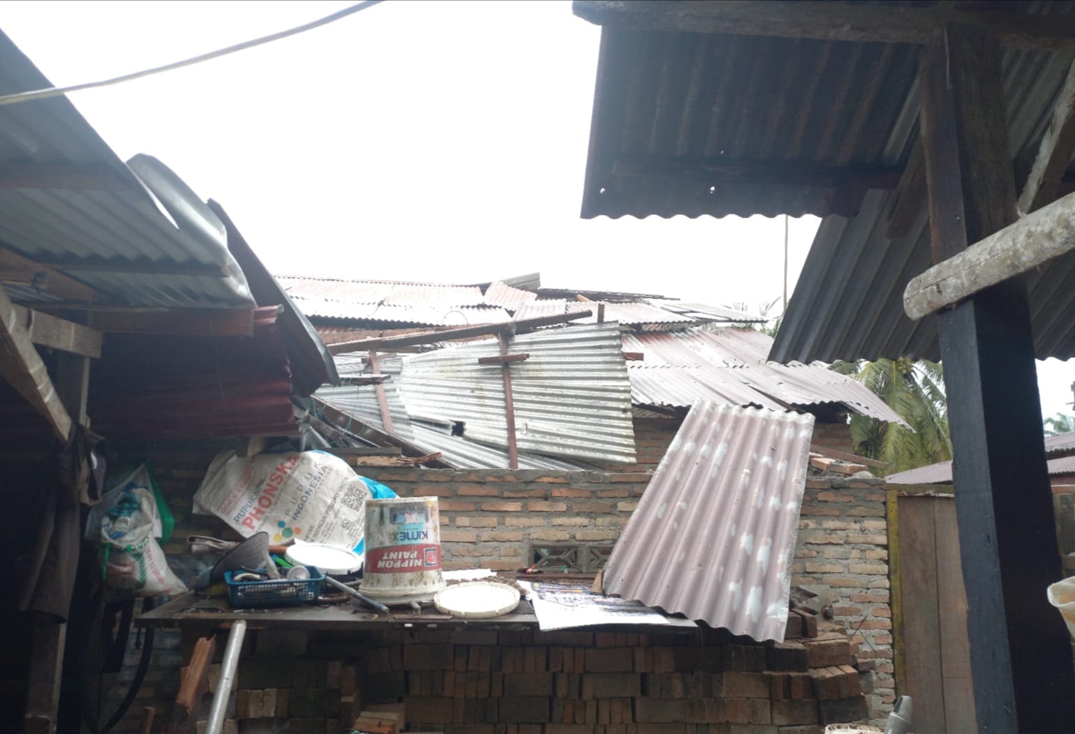 Syamzaini (57) mengatakan, angin yang datang secara tiba-tiba membuat keluarganya panik akibat atap dapur rumahnya diterjang angin puting beliung.