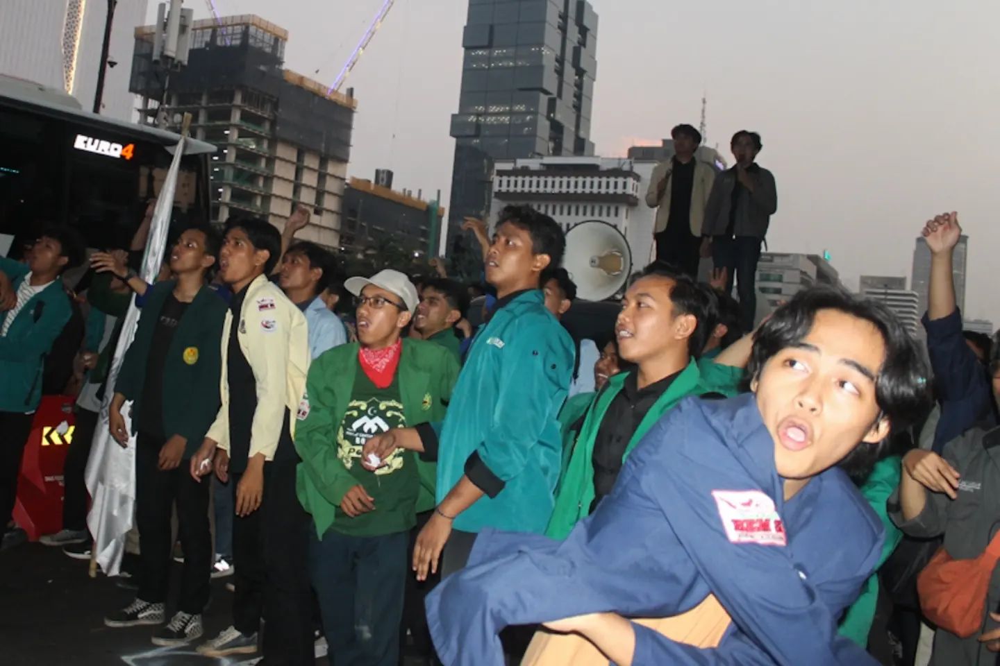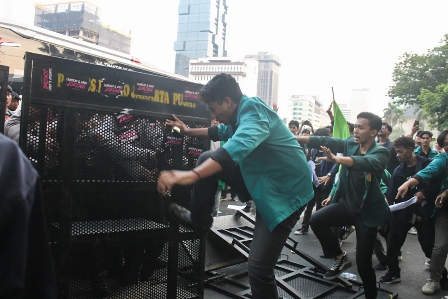 JAKARTA, detak.co.id – Sejumlah mahasiswa yang tergabung dalam Badan Eksekutif Mahasiswa Seluruh Indonesia (BEM SI) menggelar aksi unjuk rasa di Patung Kuda Arjuna Wiwaha, Jakarta Pusat, Jumat (18/10/2024). Aksi yang membawa tuntutan untuk mengadili Jokowi tersebut diwarnai saling dorong antara mahasiswa dan polisi.