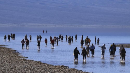 detak.co.id, Death Valley — Danau purba muncul lagi di Taman Nasional Death Valley, Amerika Serikat akibat curah hujan yang tinggi dari Badai Hillary. (Foto: David Swanson/AFP)