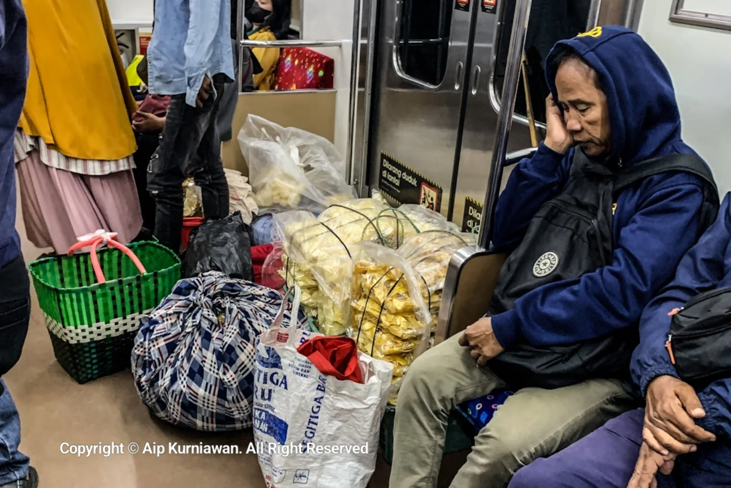detak.co.id JAKARTA – Sejumlah pedagang membawa barang dagangan dalam rangkaian KRL Rangkasbitung-Tanah Abang, Jumat (22/8/2025) pagi. PT KAI segera meluncurkan kereta khusus petani-pedagang yang saat ini masih dalam tahap pengembangan. FOTO: DETAK/Aip Kurniawan