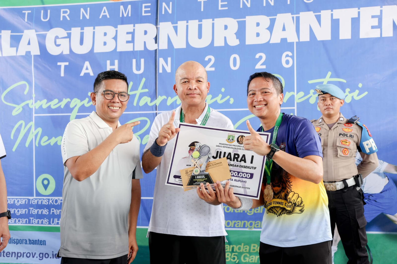 Sebagai informasi, Turnamen Tenis Piala Gubernur Banten Tahun 2026 melombakan kategori untuk ganda perorangan KU-85, ganda perorangan KU eksekutif, dan beregu (ganda bebas, ganda KU-85, ganda KU-100). Untuk kategori eksekutif Juara pertama Kapolda Banten, Juara kedua Gubernur Banten, dan juara ketiga Danrem 064 Maulana. (Zal)