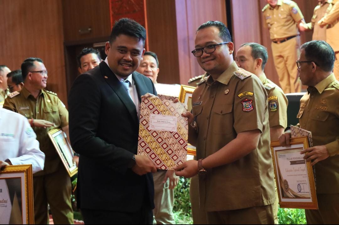 Penghargaan diberikan kepada Pemerintah Kab/Kota yang diserahkan langsung oleh Gubernur Sumut Bobby Nasution saat membuka secara resmi launching Universal Health Coverage (UHC) Prioritas bersama Direktur Kepesertaan BPJS Kesehatan, David Bangun