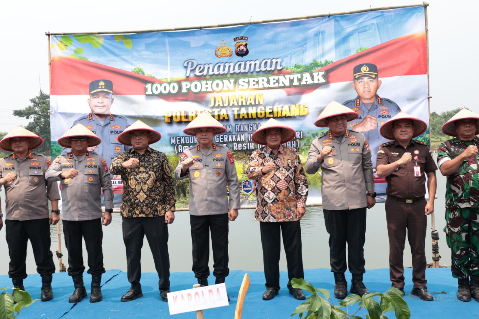 TANGERANG, detak.co.id – Bupati Tangerang, Moch. Maesyal Rasyid bersama Kapolda Banten melaksanakan ground breaking pembangunan Jembatan Merah Putih Presisi Polresta Tangerang di Desa Pangadegan, Kecamatan Pasar Kemis, serta penanaman 1.000 pohon di Sindangjaya Selasa (21/4/26).