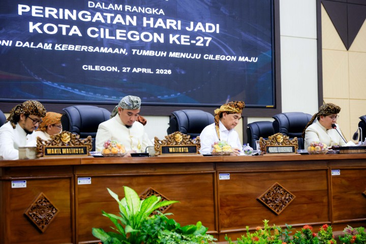 “Saya ingin kabupaten dan kota maju bersama, otomatis Provinsi Banten akan maju,” ungkap Dimyati usai Rapat Paripurna Istimewa DPRD Kota Cilegon dalam rangka Peringatan Hari Jadi Ke-27 Kota Cilegon di Gedung DPRD Kota Cilegon Jl. Jenderal Sudirman, Ramanuju, Kota Cilegon, Senin (27/4/2026).