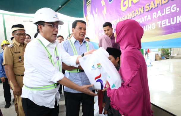Selain sambungan air bersih tanpa biaya, warga juga menerima paket sembako sebagai bentuk tambahan bantuan.