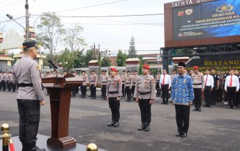 detak.co.id, Kota Banjar-Berlokasi di Halaman Mapolres Banjar, Kapolres Banjar AKBP Tyas Puji Rahadi, S.I.K. pimpin apel kesiapan pengamanan malam Takbir hari raya Idul Fitri 1446 H 2025. (30/03/2025)