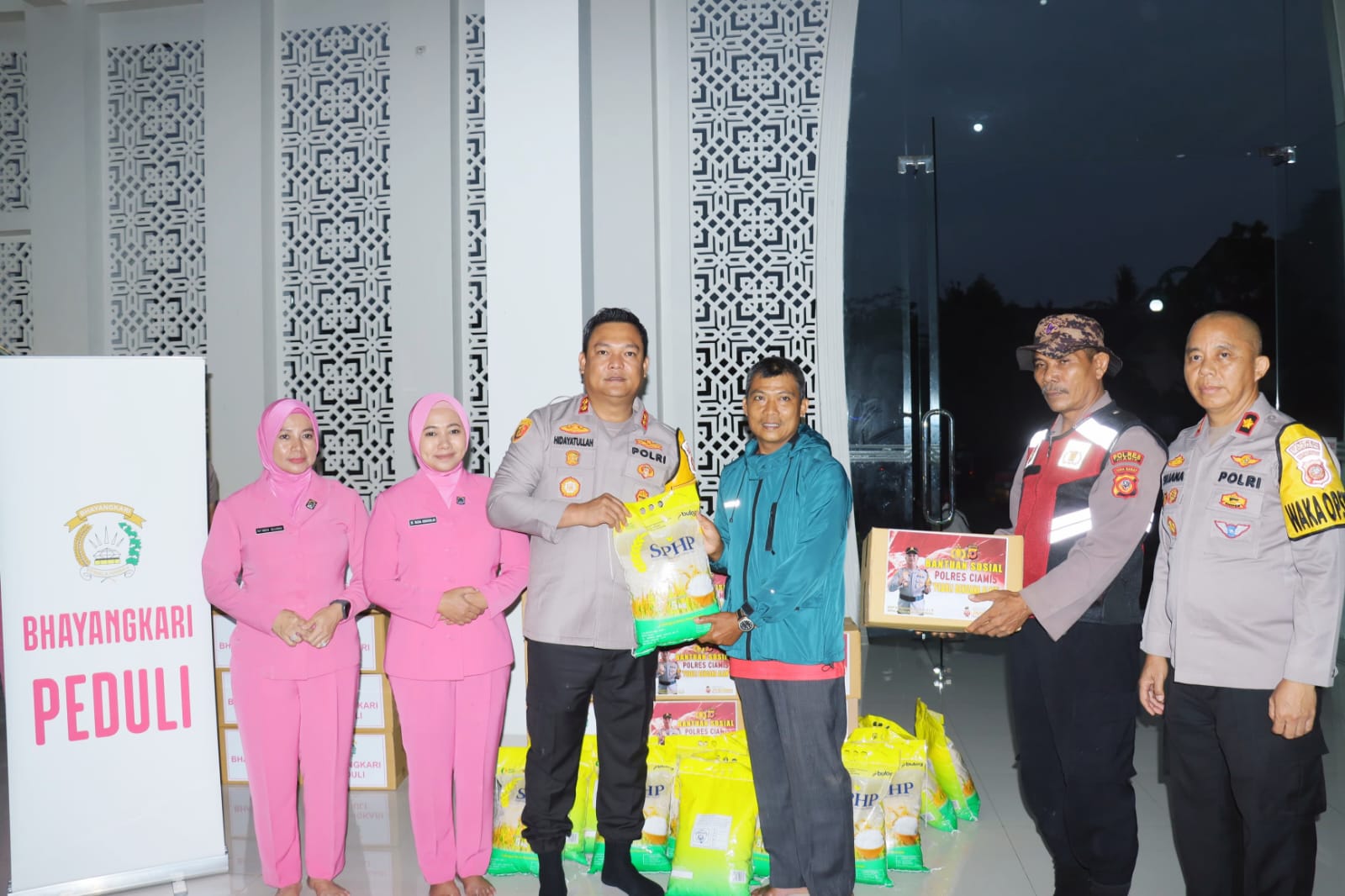 Kegiatan yang berlangsung mulai pukul 17.00 WIB hingga 19.00 WIB tersebut merupakan bentuk kepedulian dan perhatian Polres Ciamis terhadap masyarakat yang terdampak bencana banjir akibat luapan debit air Sungai Citalahab yang menyebabkan tanggul jebol sepanjang kurang lebih 30 meter.