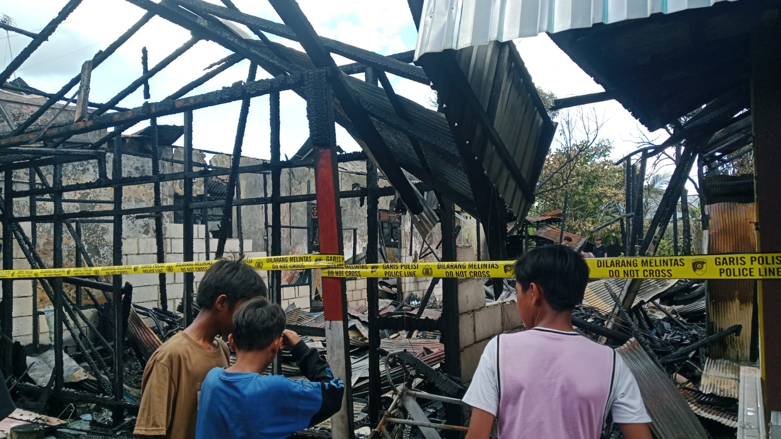 Setelah api berhasil dijinakkan, petugas Damkar bersama warga melakukan proses pendinginan di lokasi kejadian. Aparat kepolisian dari Polsek setempat juga memasang garis pembatas untuk mengamankan area kebakaran.