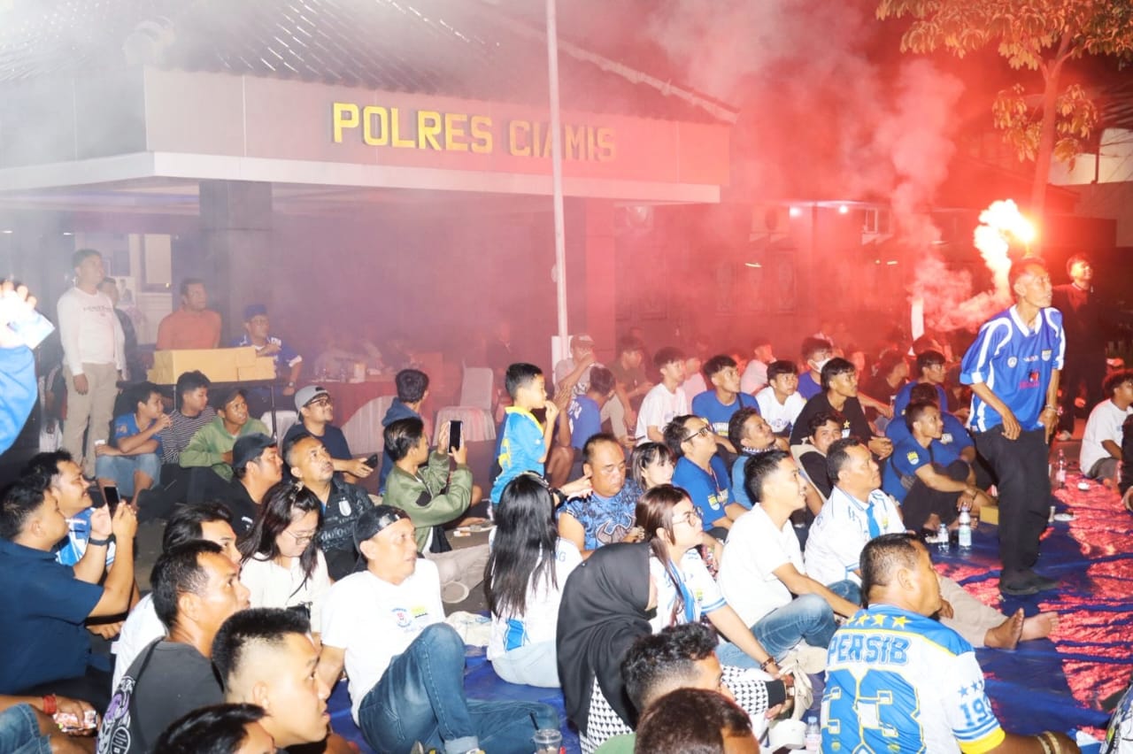 detak.co.id CIAMIS-Halaman Markas Komando (Mako) Polres Ciamis pada Jumat malam (17/10/2025) menjadi lautan biru dalam acara Nonton Bareng (Nobar) pertandingan BRI Super League antara Persib Bandung melawan PSBS Biak. Kegiatan yang digelar mulai pukul 19.00 WIB ini sukses menyatukan elemen Forkopimda, komunitas suporter, dan Organisasi Kepemudaan (OKP) sebagai upaya Cooling System untuk menjaga Keamanan dan Ketertiban Masyarakat (Harkamtibmas) di Kabupaten Ciamis.