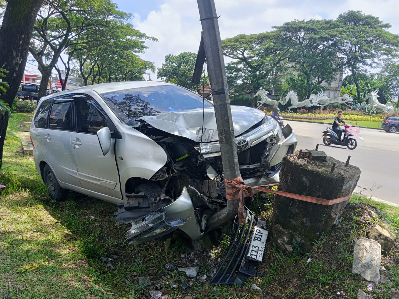 Lepas Kendali, Avanza di Jalan Pemda Tigaraksa Remek Tabrak Tiang PJU