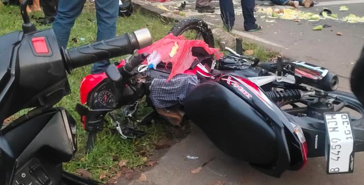 Motor salah satu pengendara yang tabrakan di Jalan Raya Serpong.