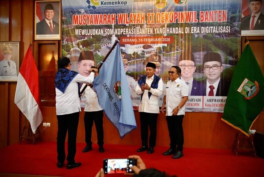 detak.co.id, BANTEN – Pemerintah Provinsi (Pemprov) Banten menegaskan komitmennya menjadikan koperasi sebagai penggerak utama ekonomi daerah, terutama dalam memperluas akses produk usaha mikro, kecil, dan menengah (UMKM). Penegasan itu mengemuka dalam Musyawarah Wilayah II Dewan Koperasi Indonesia (Dekopin) Wilayah Banten di Gedung Negara Provinsi Banten, Kota Serang, Senin (16/2/2026).