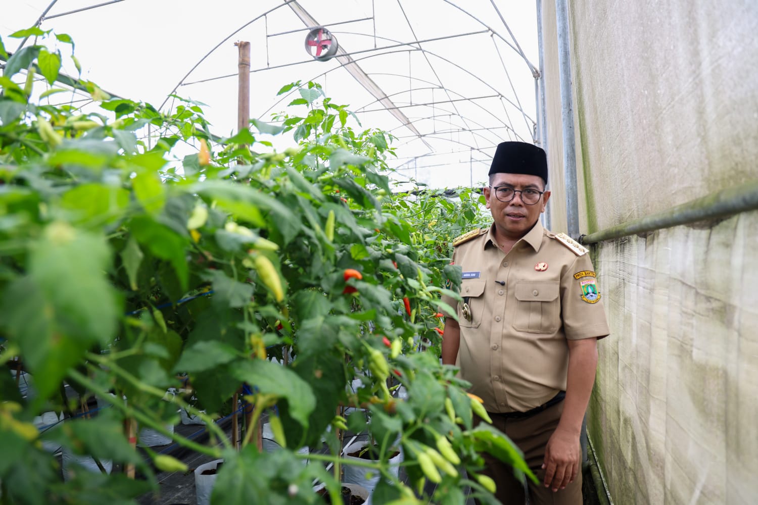 Dalam kunjungannya pada Selasa (10/2/2026), Andra Soni didampingi Bupati Lebak Hasbi Asyidiki Jayabaya. Rombongan melihat langsung proses budidaya cabai berbasis greenhouse.