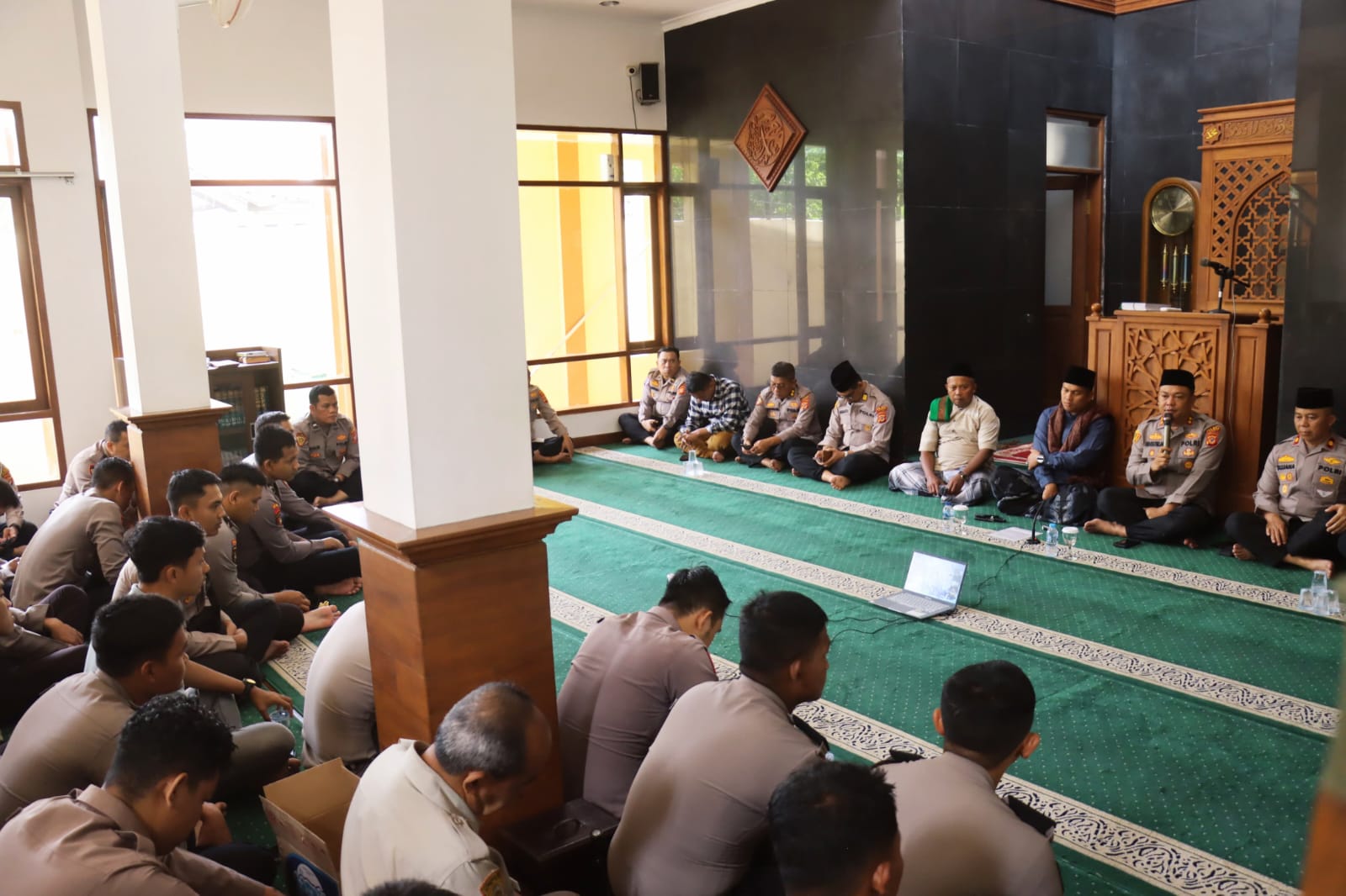 Kegiatan pembinaan rohani dan mental ini berlangsung sejak pukul 08.20 WIB hingga 09.20 WIB dengan penanggung jawab langsung Kapolres Ciamis AKBP H. Hidayatullah, S.H., S.I.K. Hadir dalam kegiatan tersebut antara lain Kapolres Ciamis, Wakapolres Ciamis, para Kabag, Kasat, Kasi, perwira Polres Ciamis, serta seluruh personel dari berbagai satuan fungsi. Kegiatan ini menjadi bagian dari program rutin Polres Ciamis dalam membentuk karakter anggota Polri agar senantiasa menjunjung tinggi nilai-nilai moral, etika, dan keagamaan dalam setiap pelaksanaan tugas.