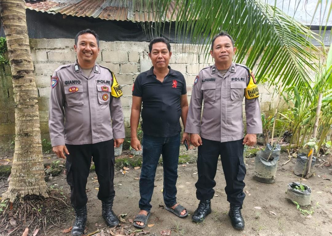 Personil Polsek Sei Tualang Raso Aipda Hery J. Pasaribu dan Bripka Gianto mengunjungi warga di jalan Sei Pawan Kel. muara Sentosa Kec. Sei Tualang Raso Kota Tanjungbalai.