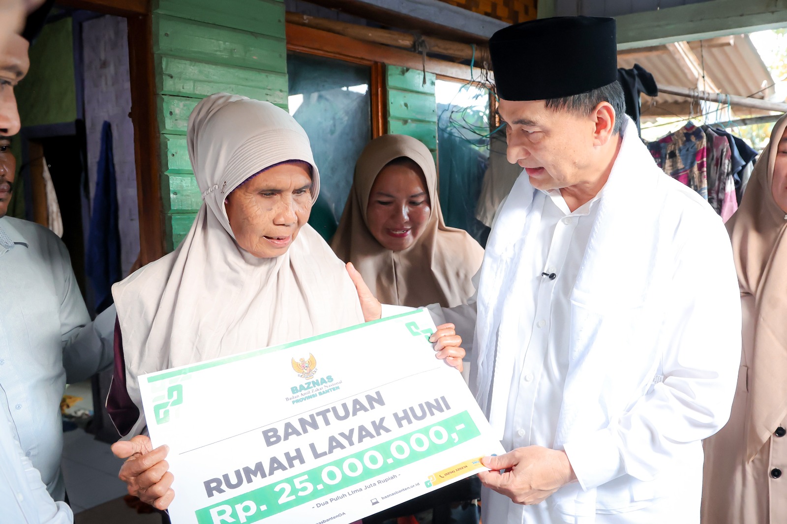 Saat melakukan Safari Ramadan di Masjid Jamiatu As-Sa’adah Jl. Raya Binuangeun-Malingping, Kecamatan Wanasalam, Kabupaten Lebak, Rabu (11/3/2026), Wagub Banten yang kerap disapa Dimyati ini memberikan bantuan renovasi RTLH kepada dua orang lansia di sekitar masjid di wilayah sana. Salah satunya Komariah yang sehari-harinya tinggal di rumah biliknya bersama cucunya.