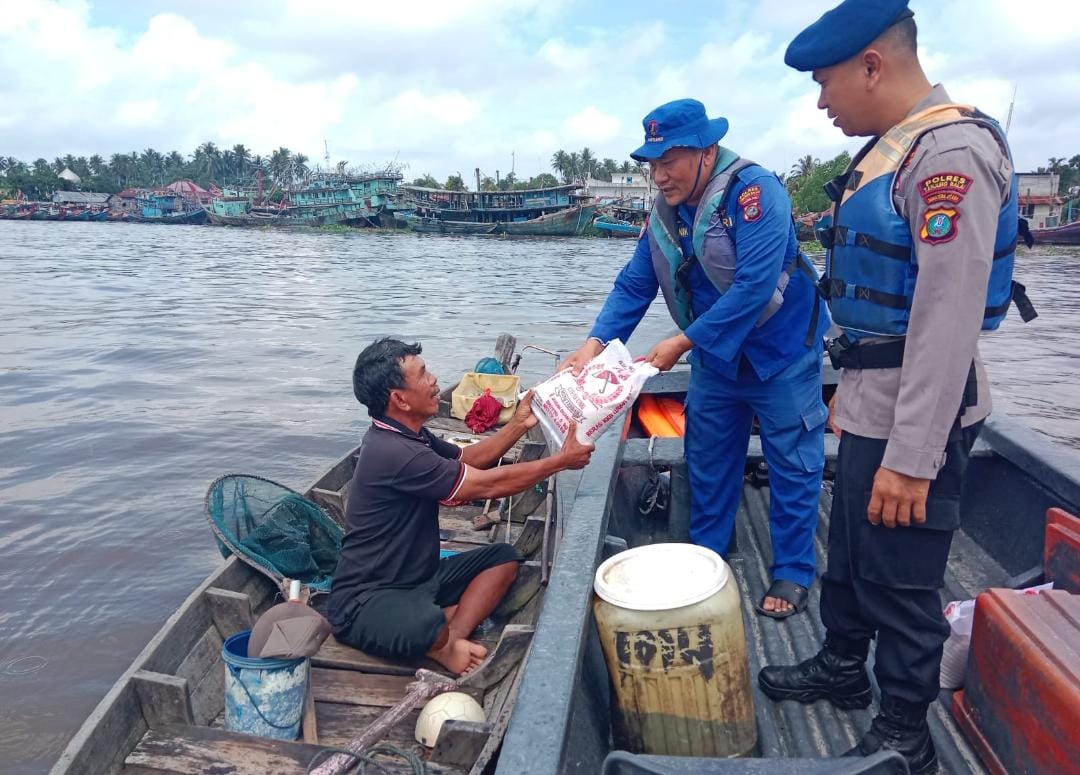 Dalam kesempatan itu Sat Polair memberikan bantuan sosial berupa beras kepada masyarakat yang kurang mampu.