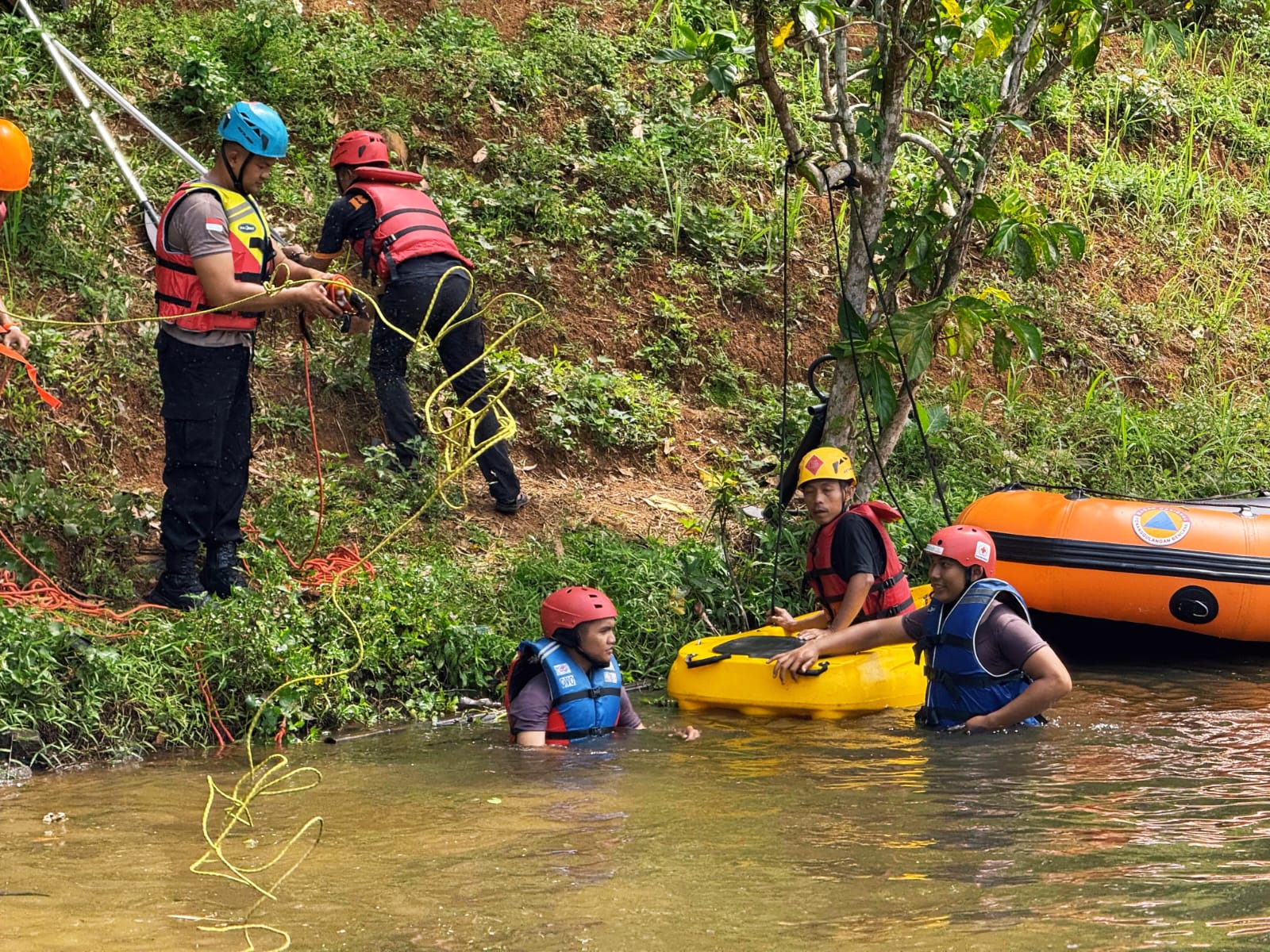 Selain latihan darat, personil juga melakukan SAR air, berlatih penyelamatan di perairan situ untuk mempersiapkan diri menghadapi potensi banjir atau kecelakaan air di Kota Banjar.