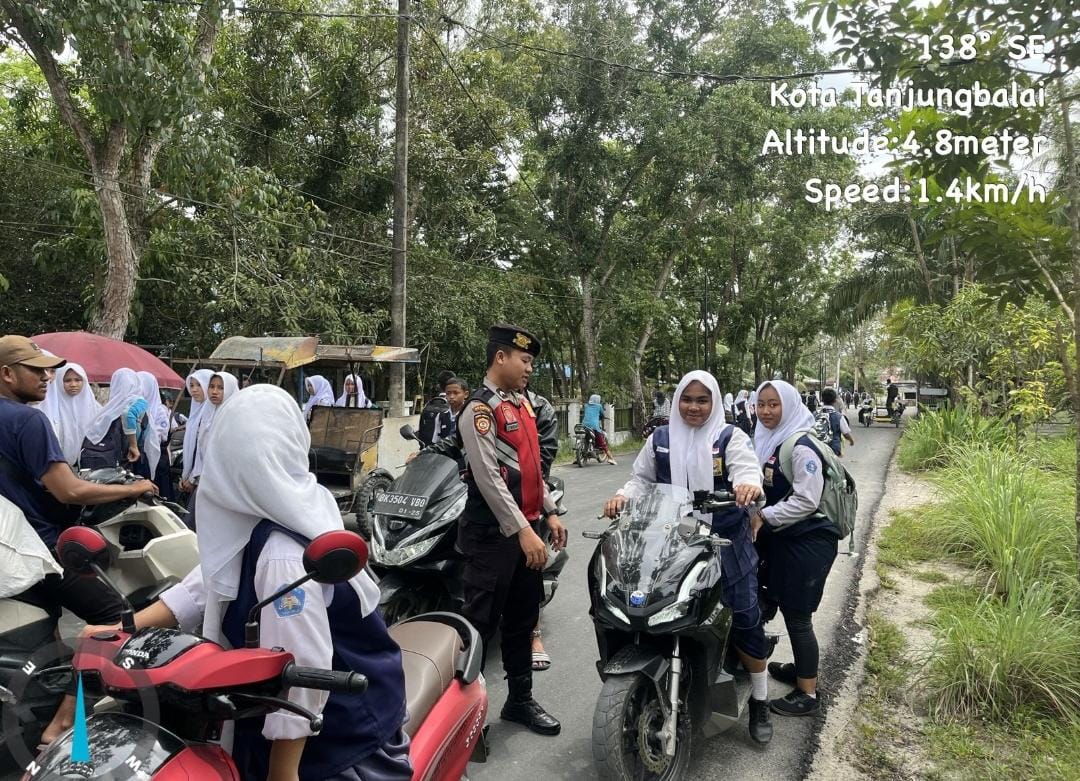 detak.co.id Tanjungbalai (Sumut)– Dalam upaya menjaga keamanan dan ketertiban masyarakat (Kamtibmas) sejak dini, Personel Sat Samapta Polres Tanjung Balai melaksanakan giat patroli sekaligus menyambangi siswa-siswi di SMPN 5 Kota Tanjung Balai, Selasa (6/1) siang.