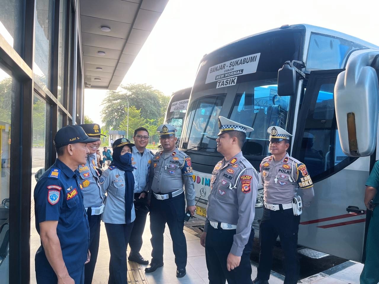 detak.co.id KOTA BANJAR-Menjelang Operasi Lilin Lodaya 2025, jajaran Satlantas Polres Banjar bersama instansi terkait menggelar pemeriksaan kelaikan kendaraan (Ramp Check) di Terminal Tipe A Kota Banjar, Selasa (2/12). Kegiatan berlangsung sejak pagi dan mendapat dukungan penuh dari Dinas Perhubungan, Kemenhub, serta Seksi Dokkes Polres Banjar. Sinergi lintas lembaga ini menjadi langkah strategis untuk memastikan keamanan transportasi massal di masa libur Natal dan Tahun Baru.
