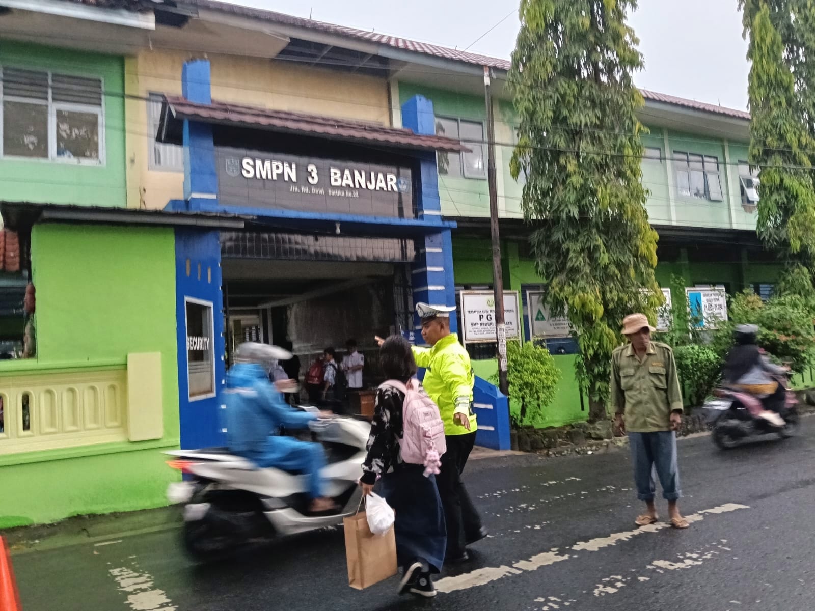 Di depan sekolah-sekolah dan simpul jalan yang ramai, petugas terlihat aktif mengatur arus kendaraan sekaligus membantu penyeberangan pelajar dan warga. Kehadiran personel di lapangan menjadi bagian dari upaya memberikan rasa aman dan kenyamanan bagi pengguna jalan.