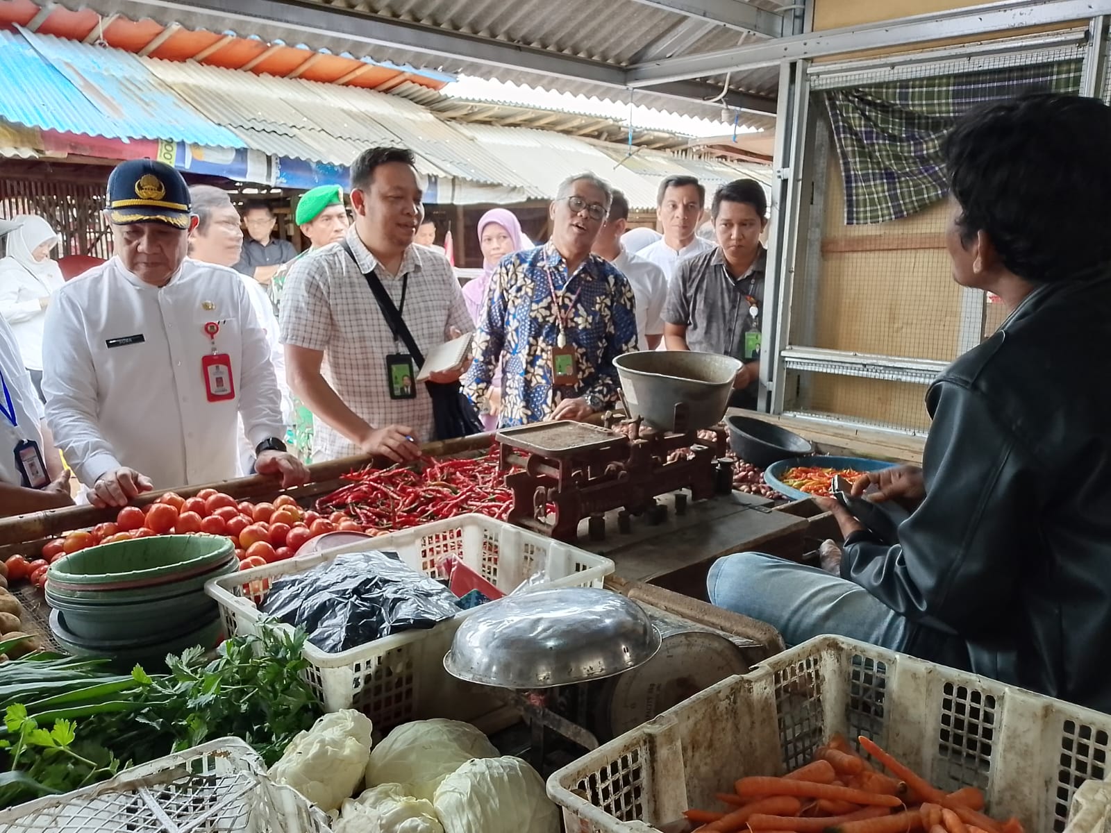 detak.co.id, TANGERANG,-Sekretaris Daerah (Sekda) Kab. Tangerang, Soma Atmaja mendampingi Kepala Biro Perencanaan, Kerjasama dan Humas Badan Pangan Nasional (Bapanas), Budi Waryanto monitoring ketersediaan dan harga berbagai komoditi pokok di Pasar Kronjo, Jum’at (06/03/26)