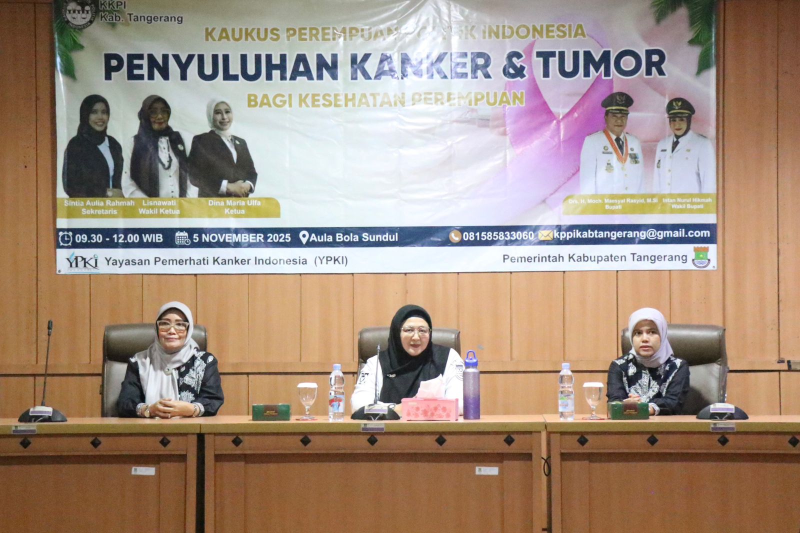 detak.co.id Tangerang, Wakil Bupati (Wabup) Tangerang, Intan Nurul Hikmah mengajak kaum perempuan untuk berperan aktif sebagai agen-agen perubahan di bidang kesehatan. Hal terserbut diungkapkan Wabup Intan saat menghadiri kegiatan Penyuluhan Kanker dan Tumor bagi Kesehatan Perempuan yang diinisiasi oleh Kaukus Perempuan Politik Indonesia (KPPI) Kabupaten Tangerang dan Yayasan Peduli Kanker Indonesia (YPKI) yang dilaksanakan di Ruang Rapat Bola Sundul Gedung Usaha Daerah (GUD), Rabu, 05/11/25)