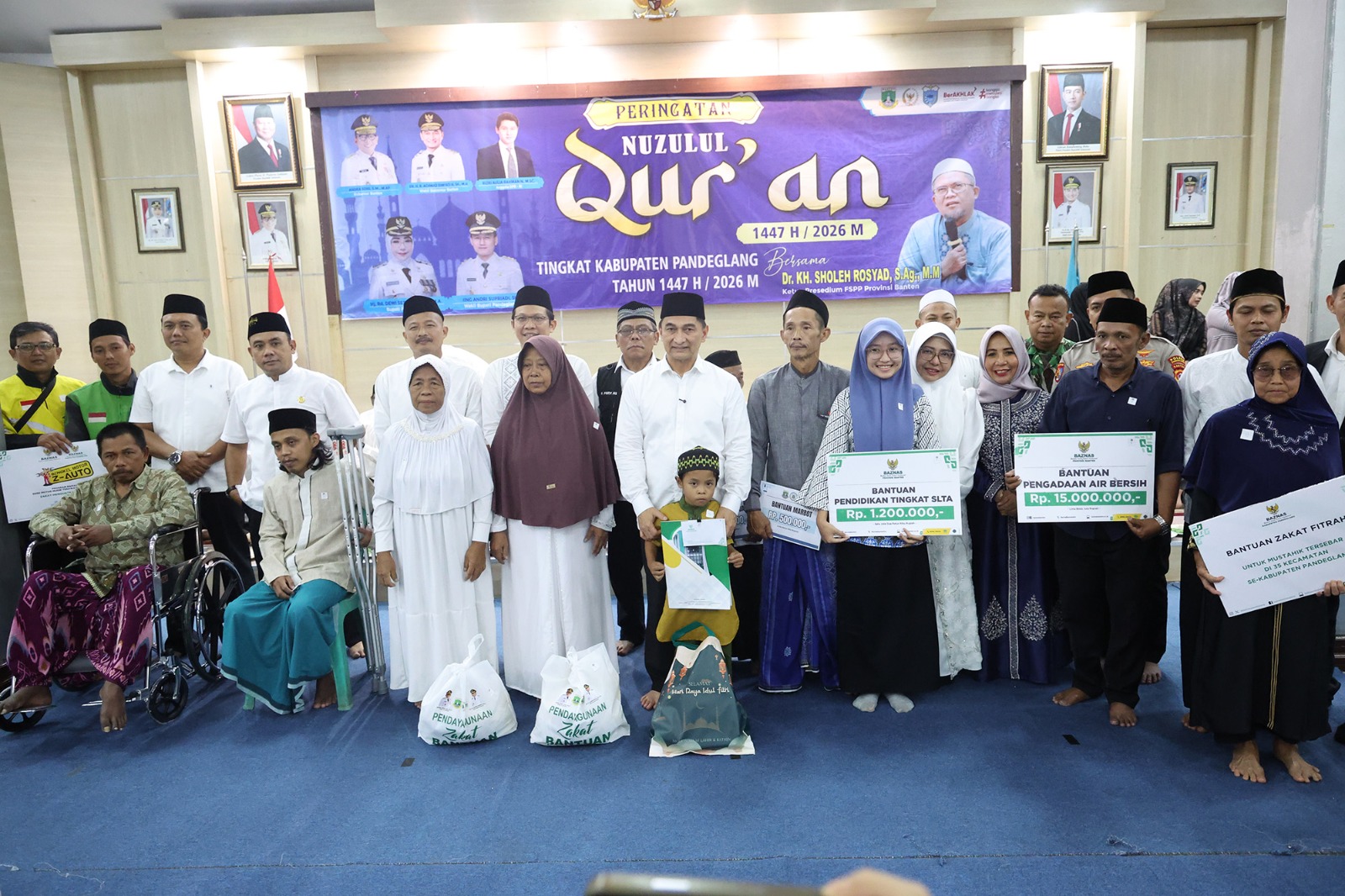 Dalam kesempatan tersebut, Wagub Dimyati juga menyerahkan sejumlah bantuan kepada masyarakat. Bantuan tersebut antara lain kursi roda, tongkat ketiak, paket sembako, bantuan bagi guru ngaji dan marbot, santunan anak yatim, bantuan sarana dan prasarana tempat peribadatan, bantuan bagi pondok pesantren, serta bantuan bagi pelajar. (Zal)