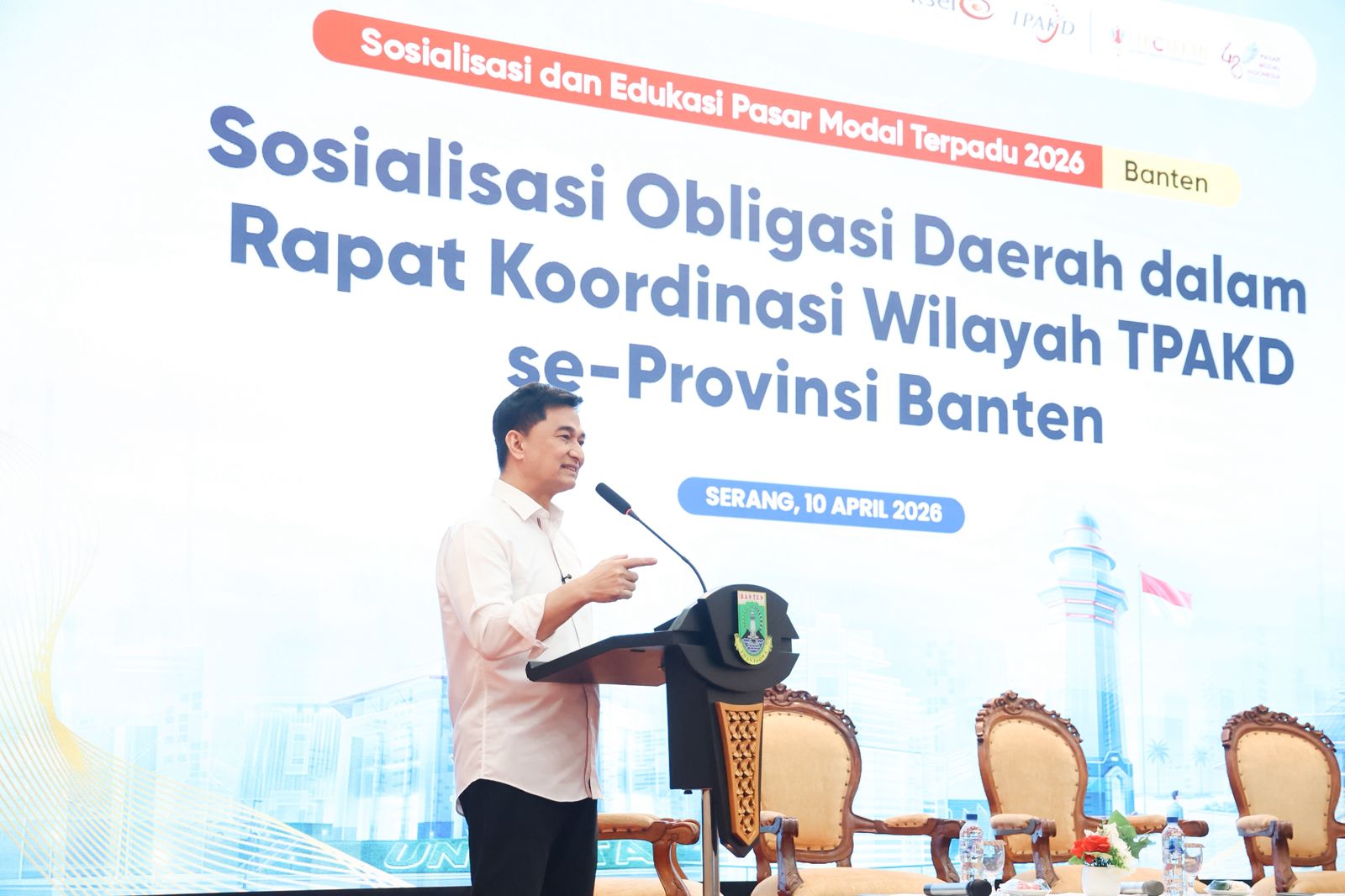 Hal ini disampaikan Dimyati saat menghadiri Sosialisasi Obligasi Daerah dalam Rapat Koordinasi Wilayah Tim Percepatan Akses Keuangan Daerah (TPAKD) se-Provinsi Banten, yang digelar di Pendopo Gubernur Banten, Kawasan Pusat Pemerintahan Provinsi Banten (KP3B), Kota Serang, Jumat (10/4/2026). Obligasi daerah menurutnya dapat menjadi solusi percepatan pembangunan infrastruktur yang membutuhkan pembiayaan besar dan cepat, tanpa harus menunggu kemampuan APBD.