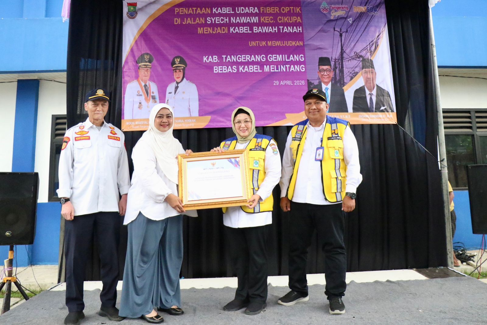 Hal tersebut diungkapkan Wabup Intan saat menghadiri kegiatan penataan kabel udara fiber optik yang ditandai dengan simbolis pemotongan kabel fiber optik jaringan udara di Jl. Raya Syech Nawawi (Depan SMPN 5 Cikupa) Kec. Cikupa, Rabu (29/04/26).